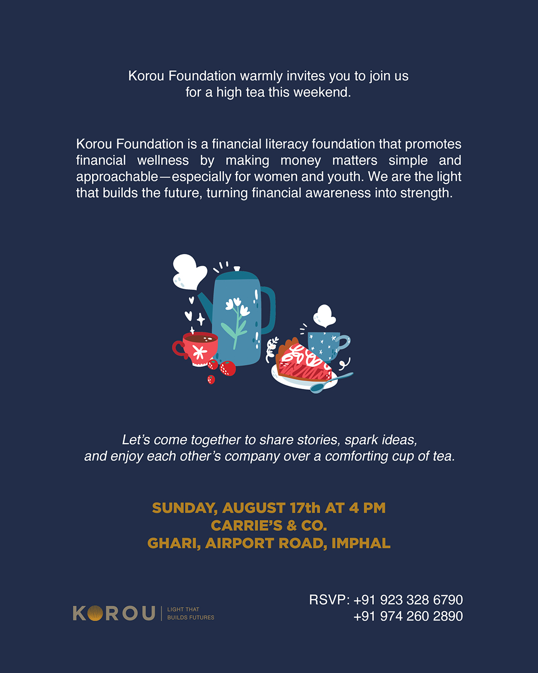 In August 2025, Korou Foundation hosted a quiet high tea gathering at Carrie’s & Co. in Imphal—an evening designed not as an event, but as a shared moment.